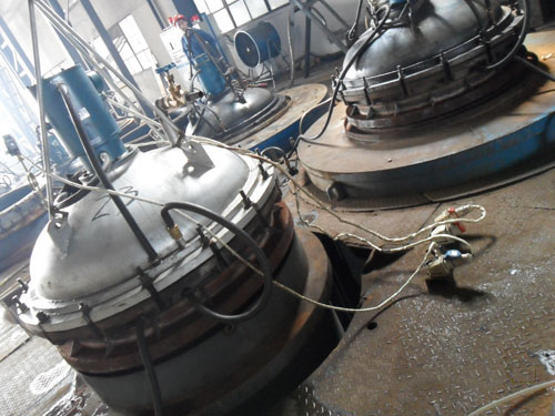 本系列電阻爐由爐殼、爐襯、爐蓋升降機(jī)構(gòu)、真空密封風(fēng)機(jī)、馬弗罐及加熱元件等組成。爐蓋升降機(jī)構(gòu)由電機(jī)齒輪箱組成,當(dāng)需要開啟爐蓋時,只需用手按下控制箱上的按鈕,為了安全起見,在升降機(jī)構(gòu)上裝設(shè)有兩個行程開關(guān),連鎖保護(hù)。爐蓋上有水冷套,以便進(jìn)入三個管子中的氣體快速冷卻,由耐熱鋼制成的馬弗罐保證滲碳的正常進(jìn)行。